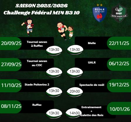 Tu es né en 2012 / 2013 pour les garçons et jusqu'à 2011 pour les filles ,tu fais partie du groupe M14/M15F